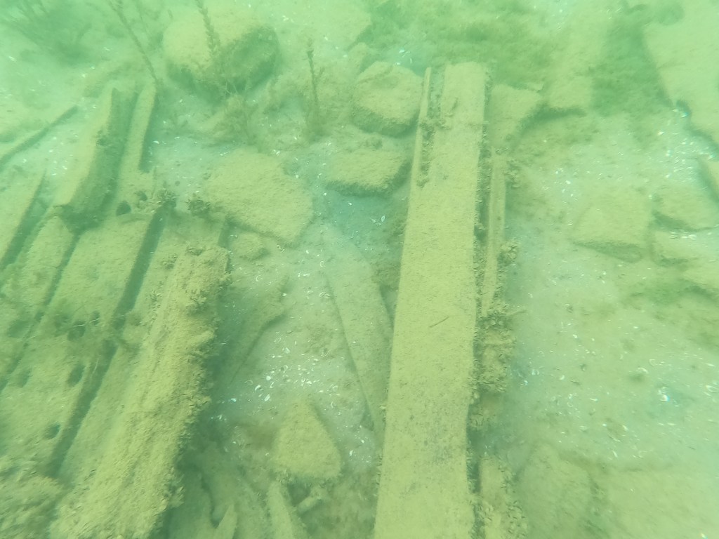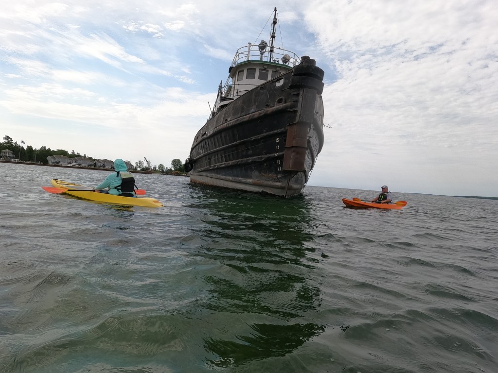 We originally signed up for a deep see cave and bluff tour but we got the call the morning of saying the water was too rough so we opted for the shipwrecks kayak tour off Bailey’s Harbor. It was overcast that morning, which made viewing the wrecks through our clear bottom kayaks difficult. Luckily Jim brought is Go Pro which he put face down on the bottom of the kayak and caught some great images and video of the shipwrecks.