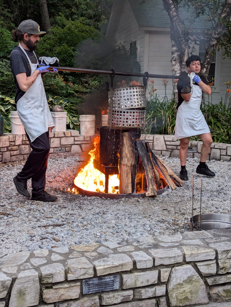 One of the top ones, was to partake in a fish boil, and the White Gull Inn was at the top of the list. We didn’t know much about these but learned during the show that fish boils started as a way to provide a hot meal to workers in the harsh cold fall and winter days. Workers complained that the potatoes and fish were too “fishy” tasting so kerosene was added to the fire at the end of the boil to burn off the fish oils from the top of the boil. It makes for quite a show!
