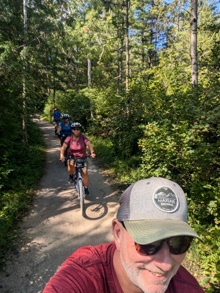 We didn’t get to play golf at Peninsula State Park, but we did get to take a bike ride on the Sunset Trail which loops through the park. The trail alternates between the woods and the shoreline of Lake Michigan. What a fun, and picturesque ride!