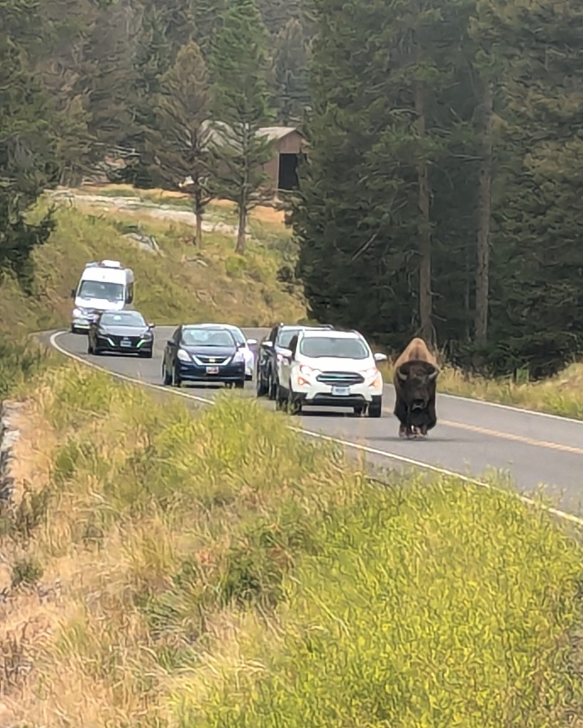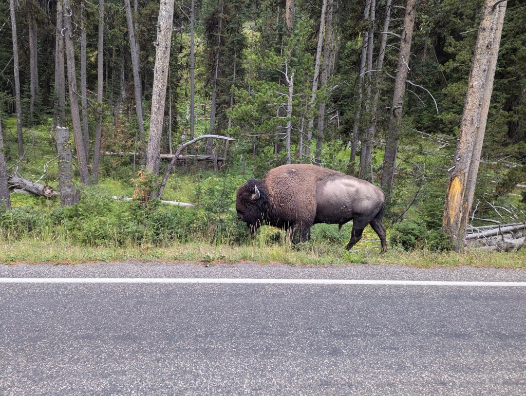 Wildlife – There are two drives where you can see a concentration of wildlife within the park, Hayden Valley and Lamar Valley. We only had time for one and chose the Hayden Valley as it was closer to Grant Campground, where we were staying. We’ll spend time in the Lamar Valley on our next visit when I have more firepower for my camera (aka a bigger zoom lens). We saw more buffalo, some were nice enough to pose for me. Our favorite was the bull out for a Sunday stroll down the road with not a care in the world. I enjoys seeing multiple deer and elk who were in full velvet. Even Punxsutawney Phil showed up letting us know summer isn’t over yet!
