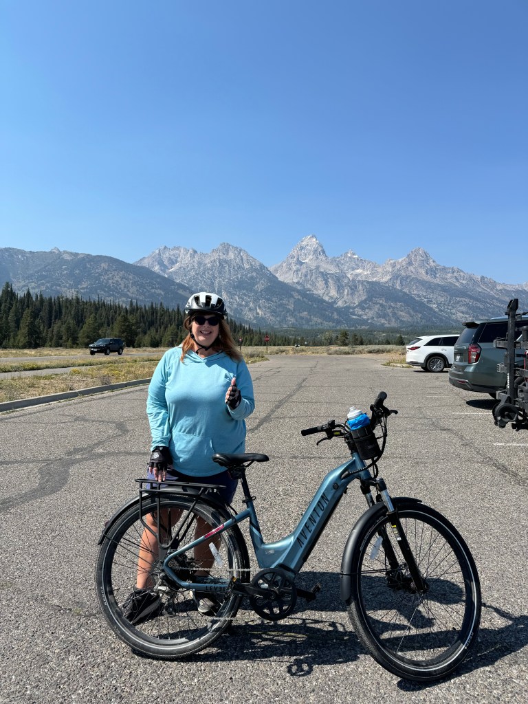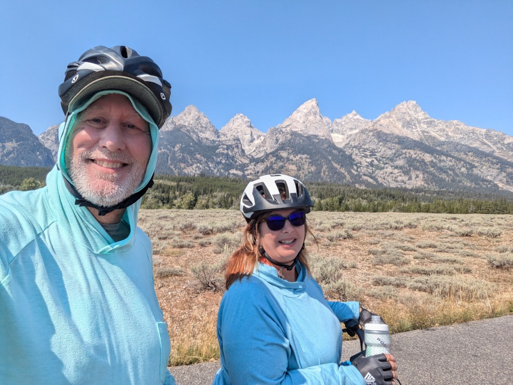 The following day we went for a bike ride along the Teton trail which starts in Jackson and winds it’s way all the way up through the Tetons NP. We chose to take a 16 mile loop Biking Teton Loop which took us to Jenny Lake and Dornan’s, when we concluded our ride with…you guessed it, more cold beer, great views, and a salad and sandwich.