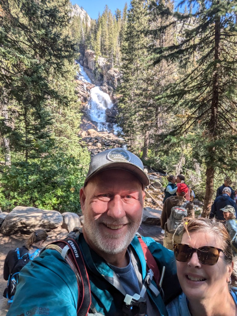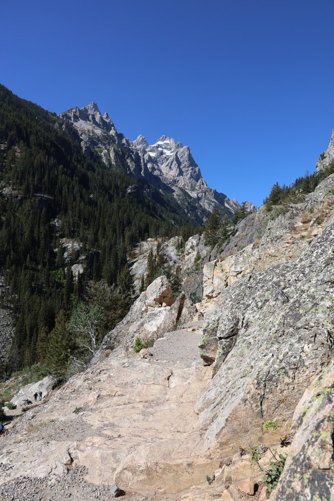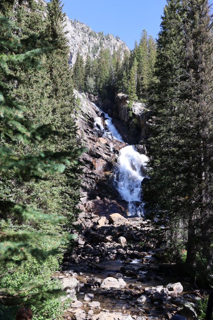 The next morning we arrived early and took the shuttle across Jenny Lake which was amazing with the Tetons rising up from the shores of the lake. The hike up into Jackson Canyon to Hidden falls was beautiful and the weather was cool and crisp. The hike from the falls to Inspiration Point was pretty steep and had some narrow passages along the cliffs which Becky chose to wait for me on. I did spot a couple mule deer hiding in the trees along the way.