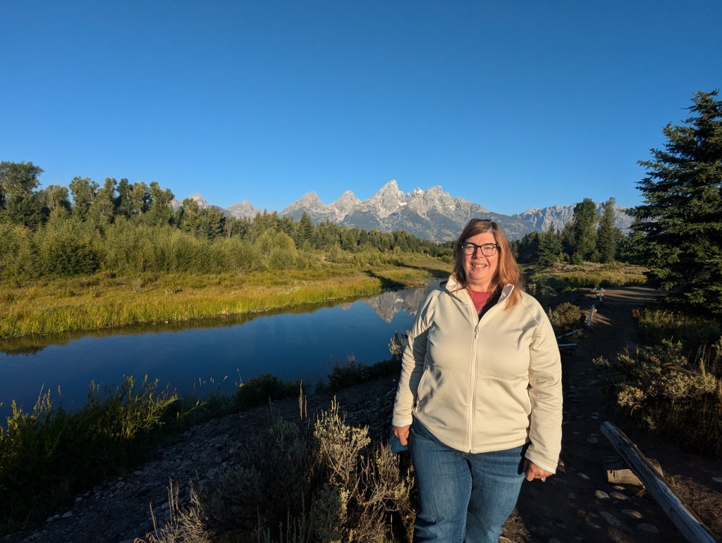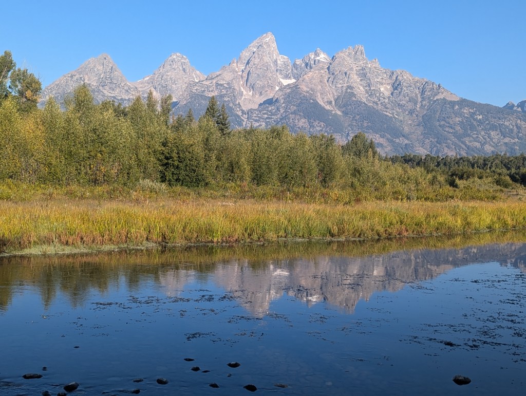 Our next stop was Schwabacher Landing where, on a calm day, you can capture reflections of the Tetons in the pools of water. Even better with my favorite subject in the foreground.