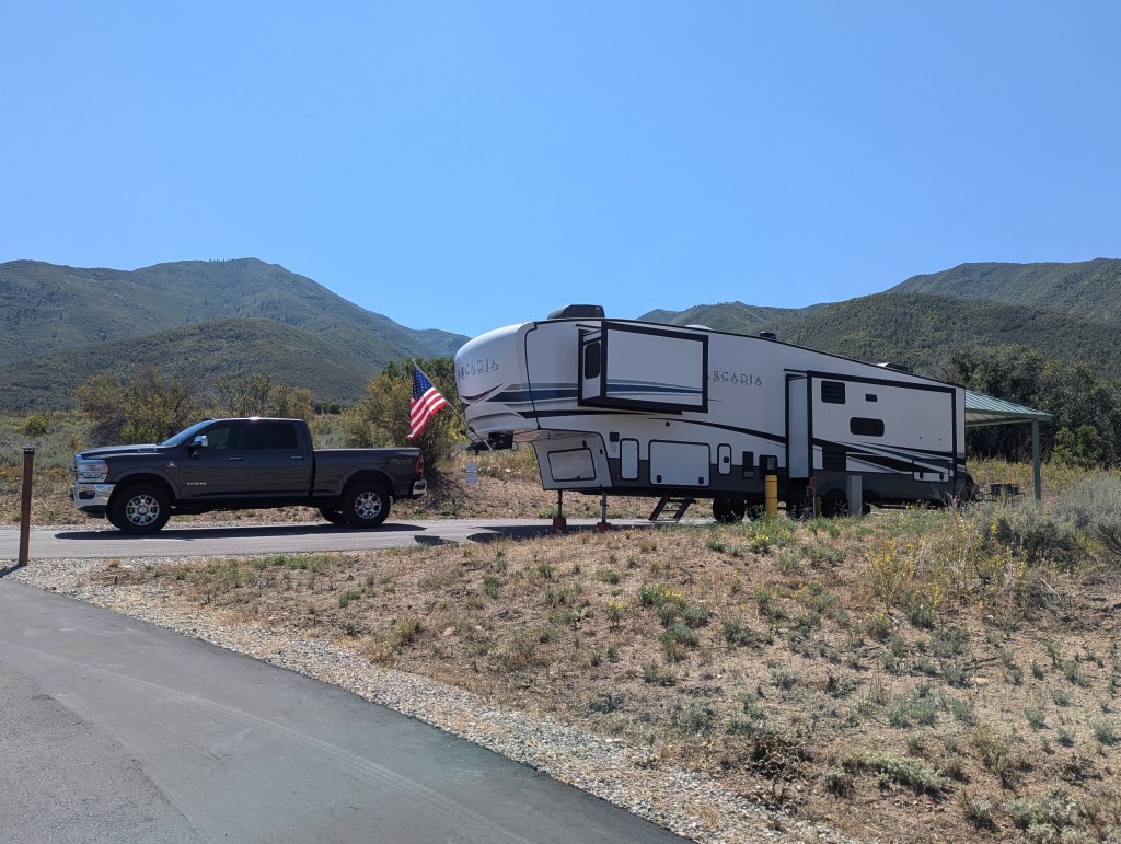 We spent Labor Day weekend at Deer Creek State Park south of Park City Utah. With all the reservations I made along the way this was the first one I screwed up. I had us arriving two days later than we actually arrived. I figured this out the day of and we were able to work with the site to fix my mistake. As you can imagine they were completely booked for the holiday weekend but they had a camp host leave early and Allison was able to get approval to put us in it. Major score for us!